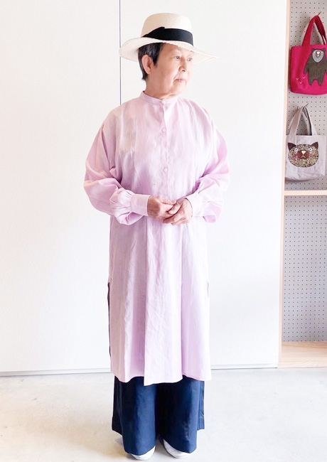 継手でお客様がご試着される際、リネンの素材や色合い、そしてその心地よさを肌で感じられると、皆さまの表情がぱっと明るくなります。そんな瞬間に立ち会うと、デザイナー・ひろみさんの思いがきちんと伝わったようで、こちらまで嬉しい気持ちになります。
