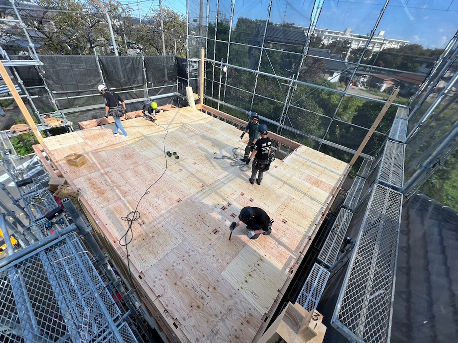 請負契約と金融機関の本審査が通過すれば、いよいよ工事が開始されます。建築中は、定期的に現場定例会を行います。作業の邪魔にならないタイミングで進捗状況を確認します。